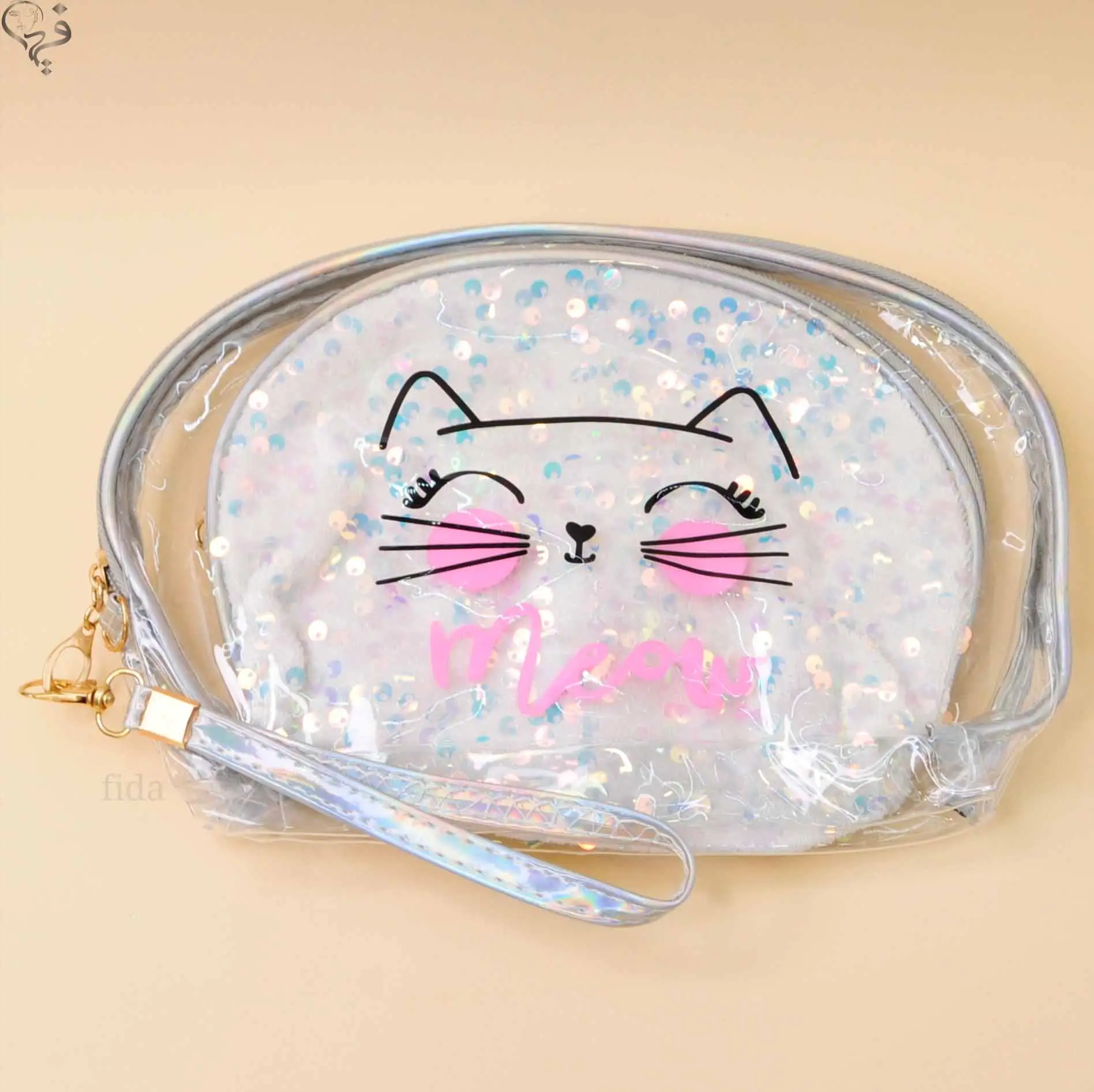 کیف آرایشی 2 تیکه طرح گربه پولک دار
