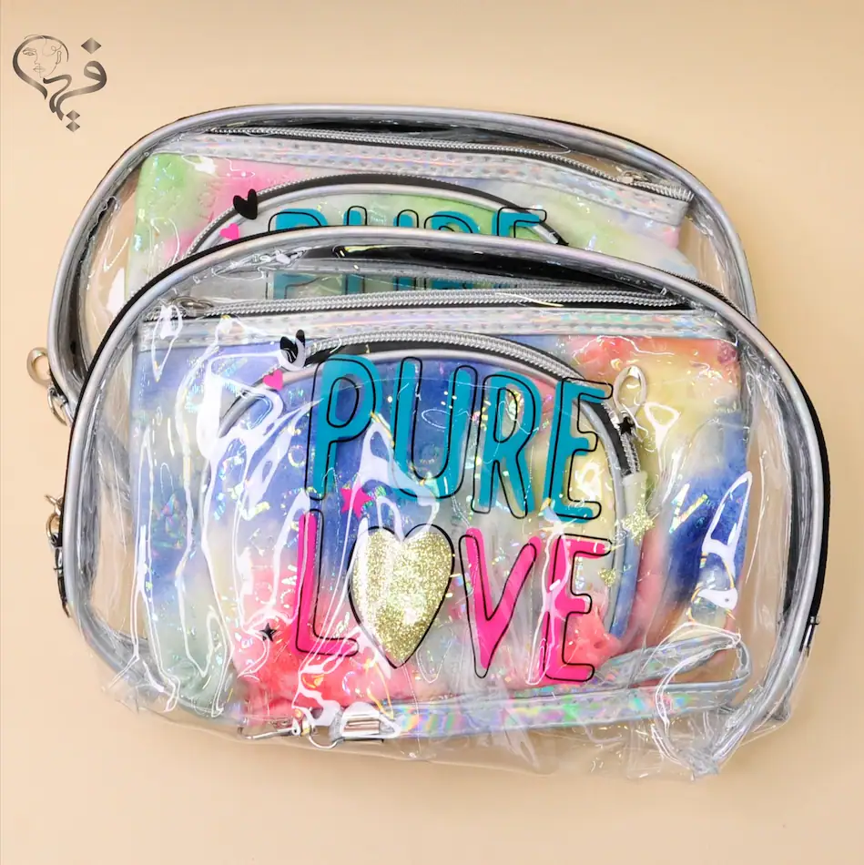 کیف آرایشی 3 تیکه طرح میکاپ و پورلاو makeup & purlove