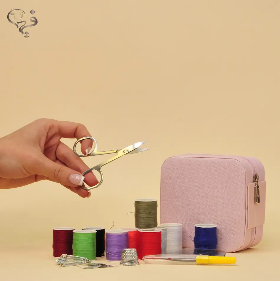 هر کیف شامل:سنجاق، قفلی، سوزن، قیچی، دکمه بازکن، نخ های رنگی