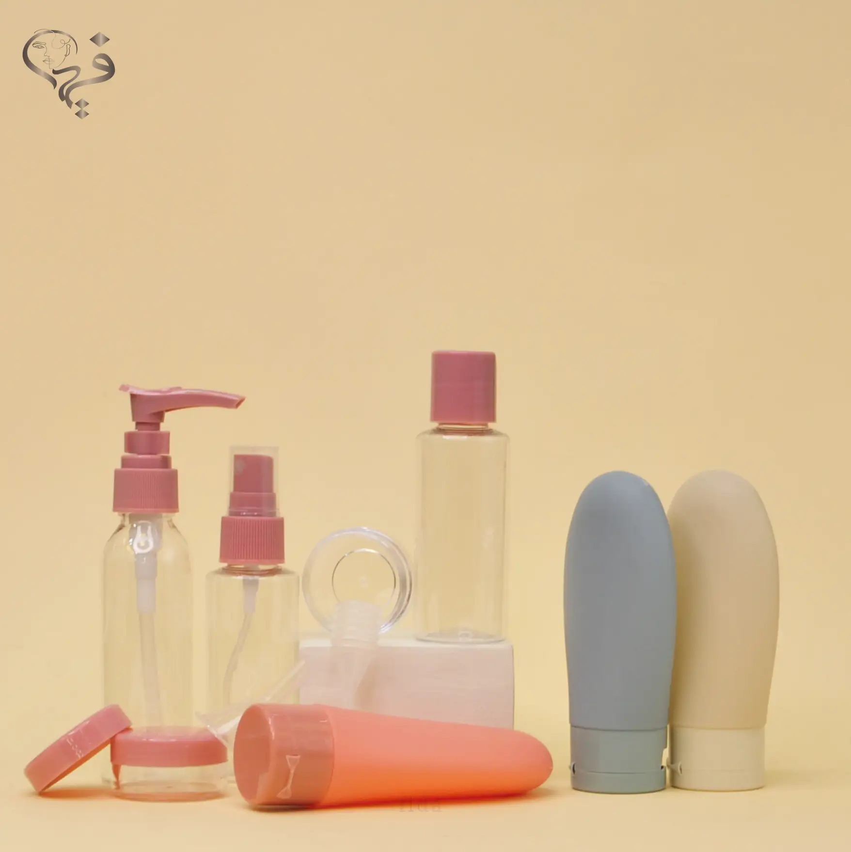 شامل 1 عدد بطری، 1 عدد اسپری، 1 عدد ظرف پمپی، دو عدد ظرف کوچک، 3 عدد ظرف پمپی نئونی، قیف (کیف فانتزی)