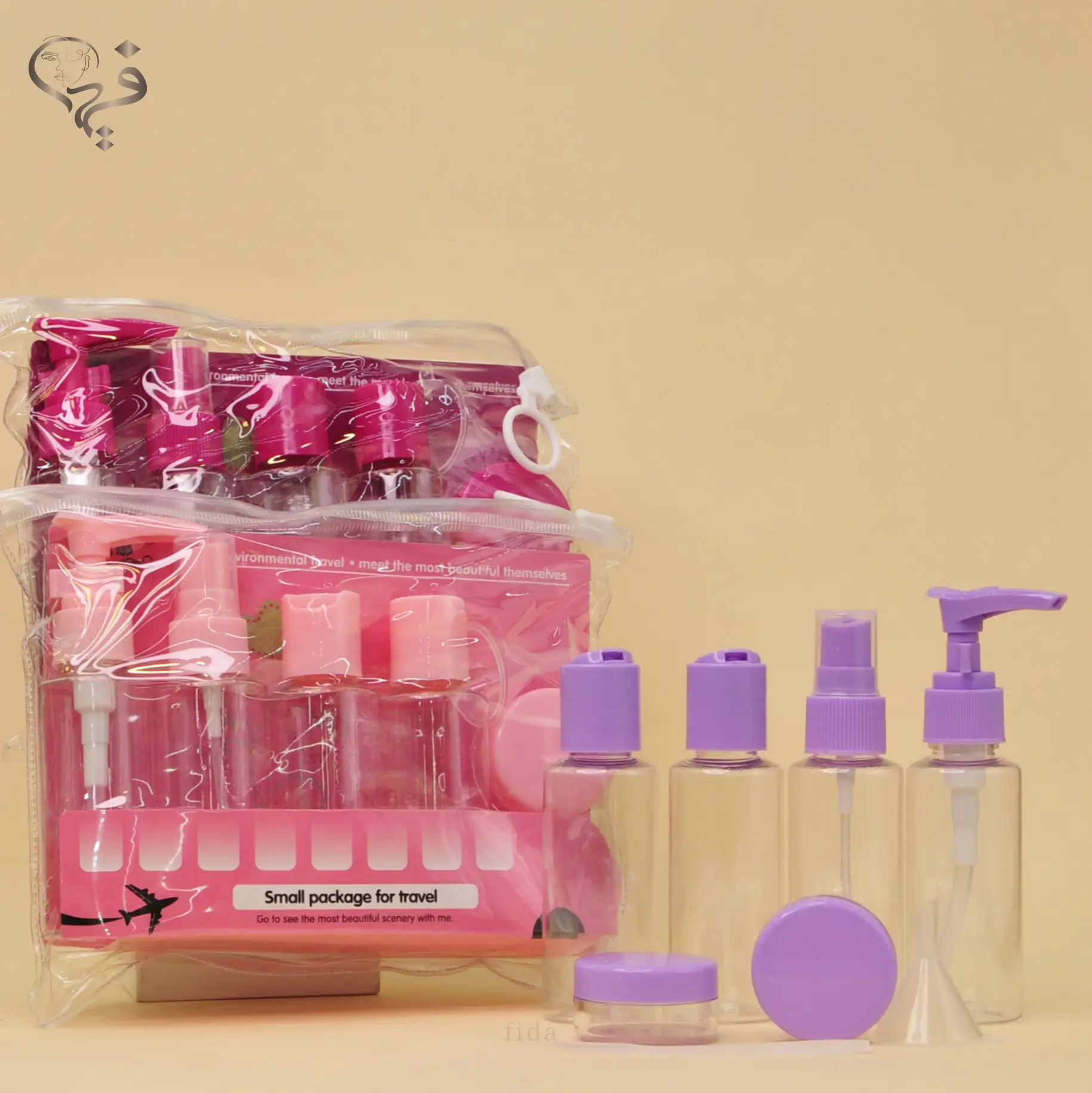 شامل 2 عدد بطری، 1 عدد اسپری، 1 عدد ظرف پمپی، دو عدد ظرف کوچک، قاشقک، قیف (کیف فانتزی)