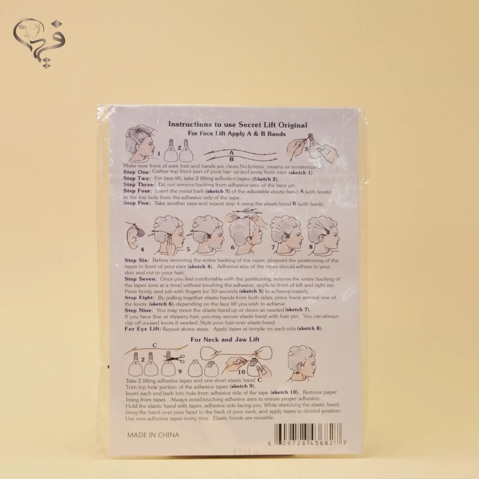 استفاده از چسب لیفت صورت بسیار ساده است. کافی است چسبها را از بستهبندی خارج کرده و طبق دستورالعمل، آنها را روی پوست تمیز و خشک بچسبانید. سپس، بندهای چسب را به آرامی کشیده و به پشت گوش متصل کنید.