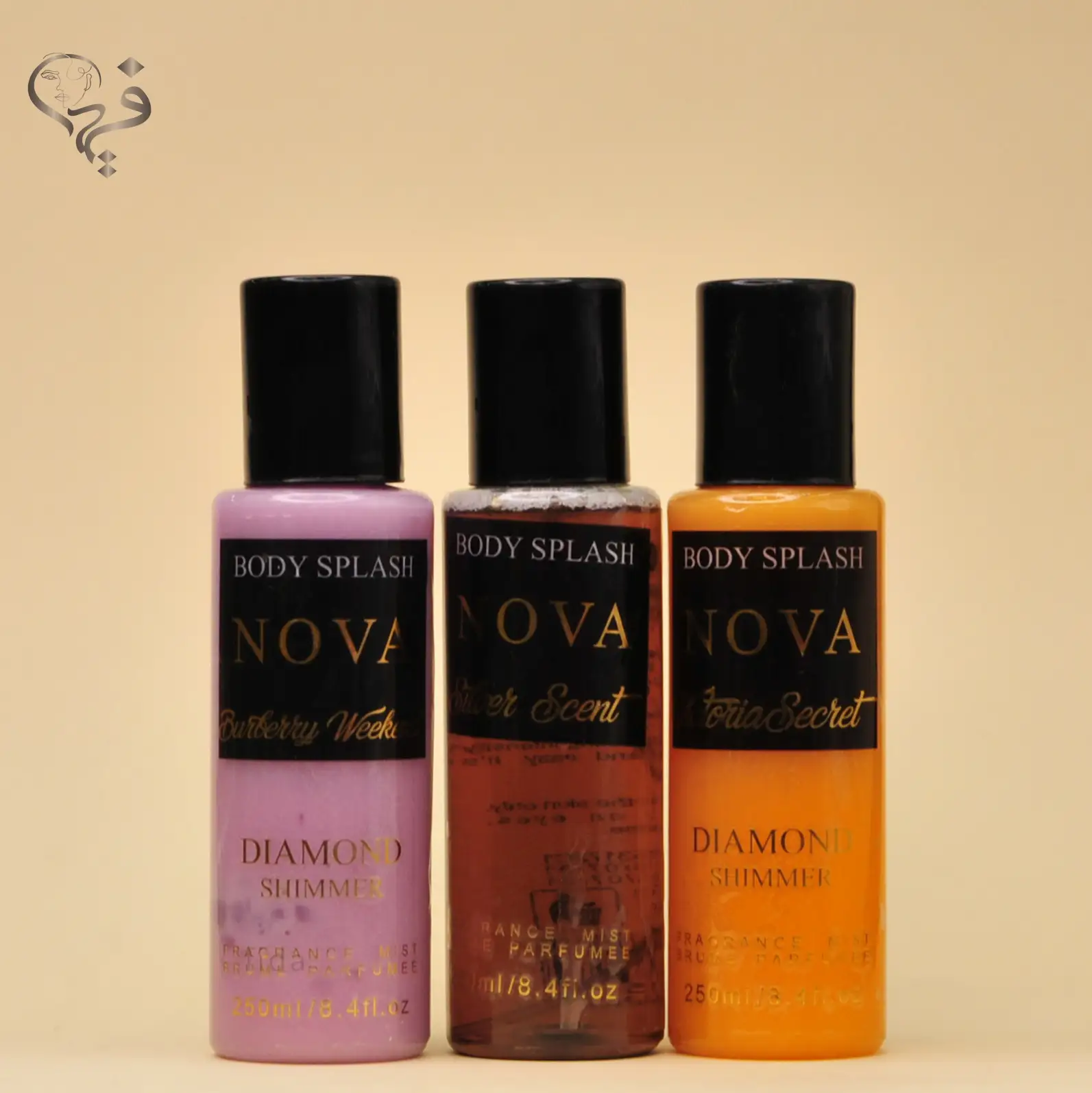 بطری بادی اسپلش شاین دار نوا بسیار شیک، جذاب و مدرن طراحی شده است. بستهبندی شفاف آن به شما اجازه میدهد مایع درخشان داخل بطری را ببینید که همین موضوع جذابیت محصول را دوچندان میکند. افکتهای شاین طلایی یا نقرهای داخل مایع، هنگام تکان دادن بطری برق خاصی ایجاد میکنند که یادآور حس لوکس بودن است. اسپری پمپ آن نیز بسیار نرم و روان عمل میکند و مایع را بهطور یکنواخت روی پوست یا مو پخش میکند.